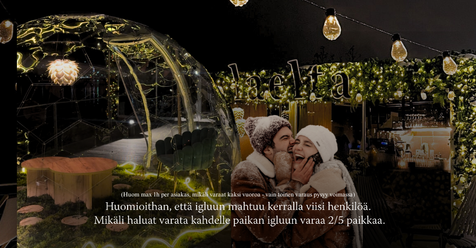 Kyläläiset, nyt on aika aistia – Tule nauttimaan kuumaa juomaa, herkullista viiniä sekä ikimuistoisista hetkistä iglun sammaleen syleilyyn.![]()